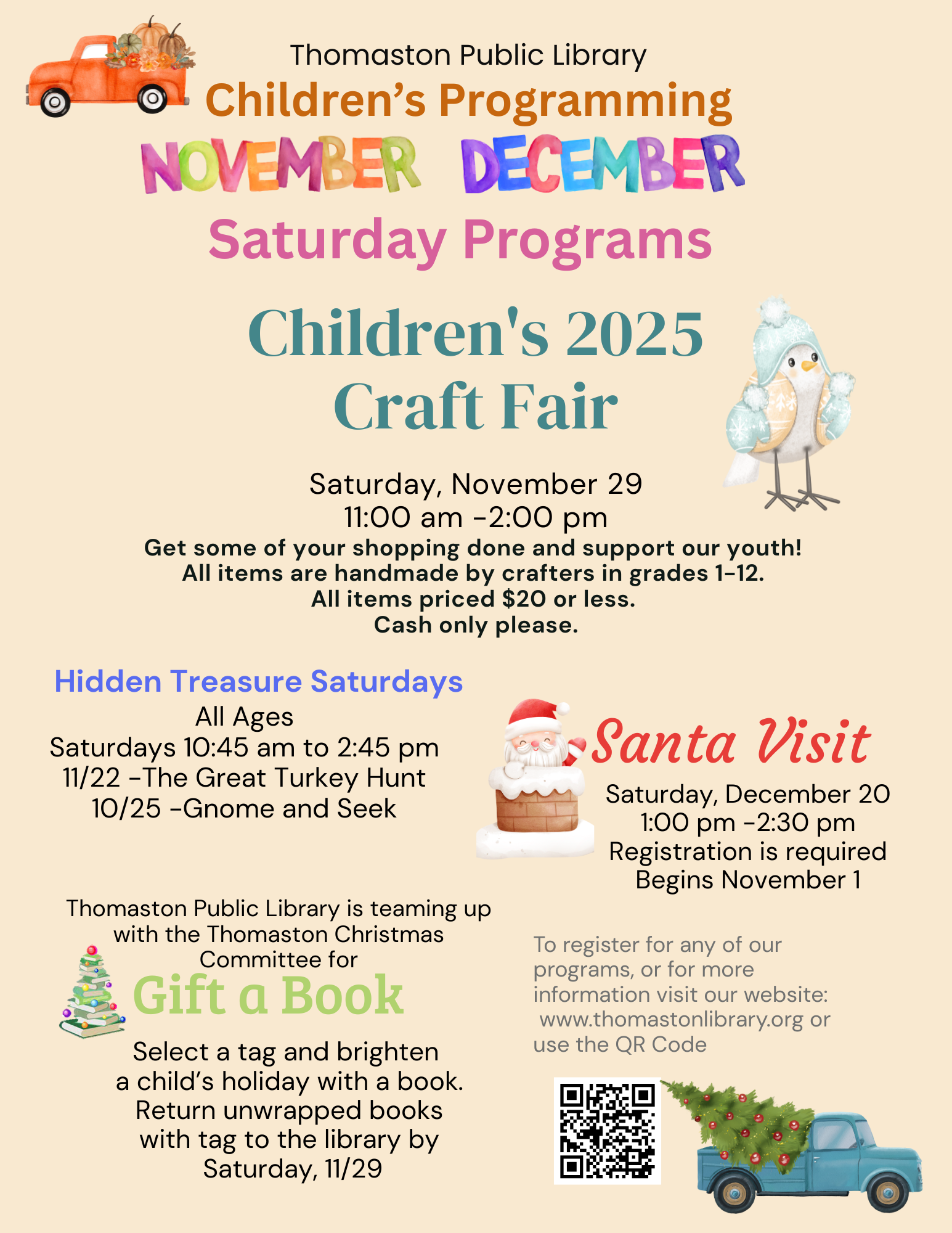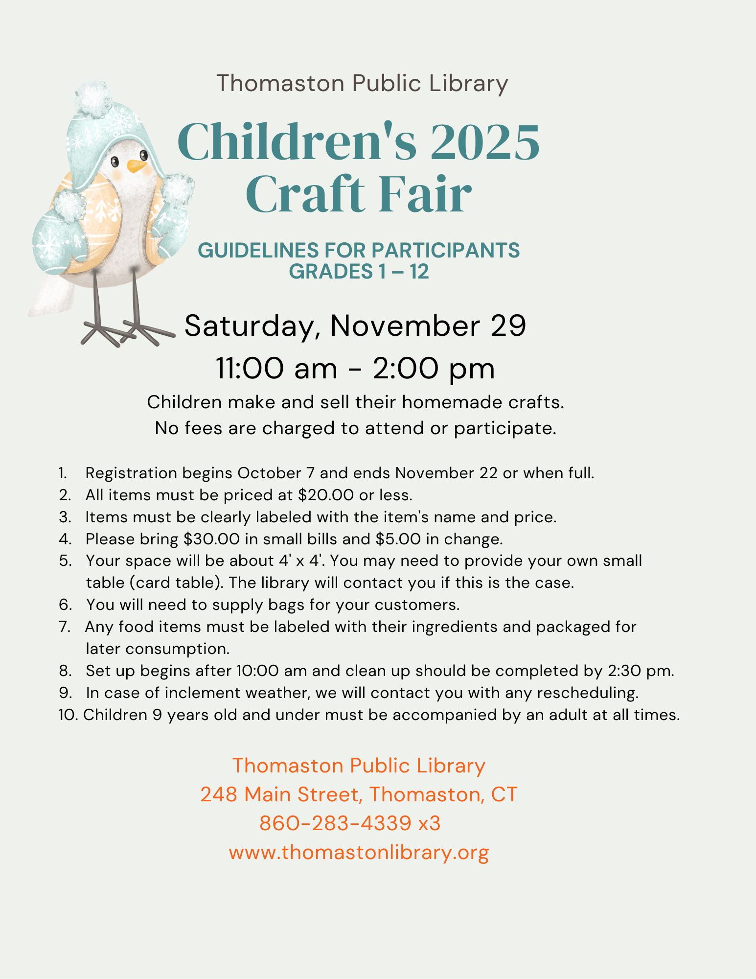 All programs are generously sponsored by the Friends of the Thomaston Public Library.